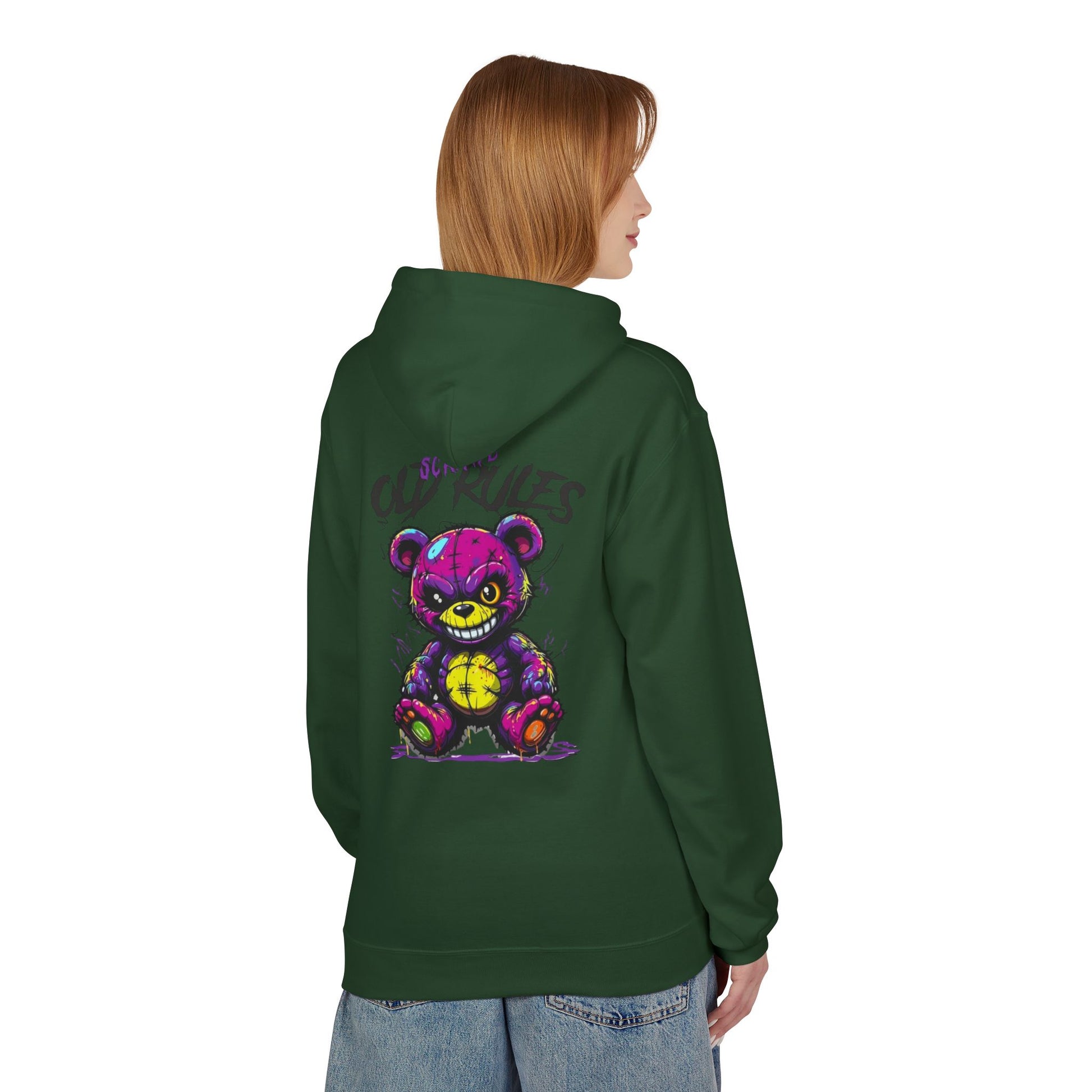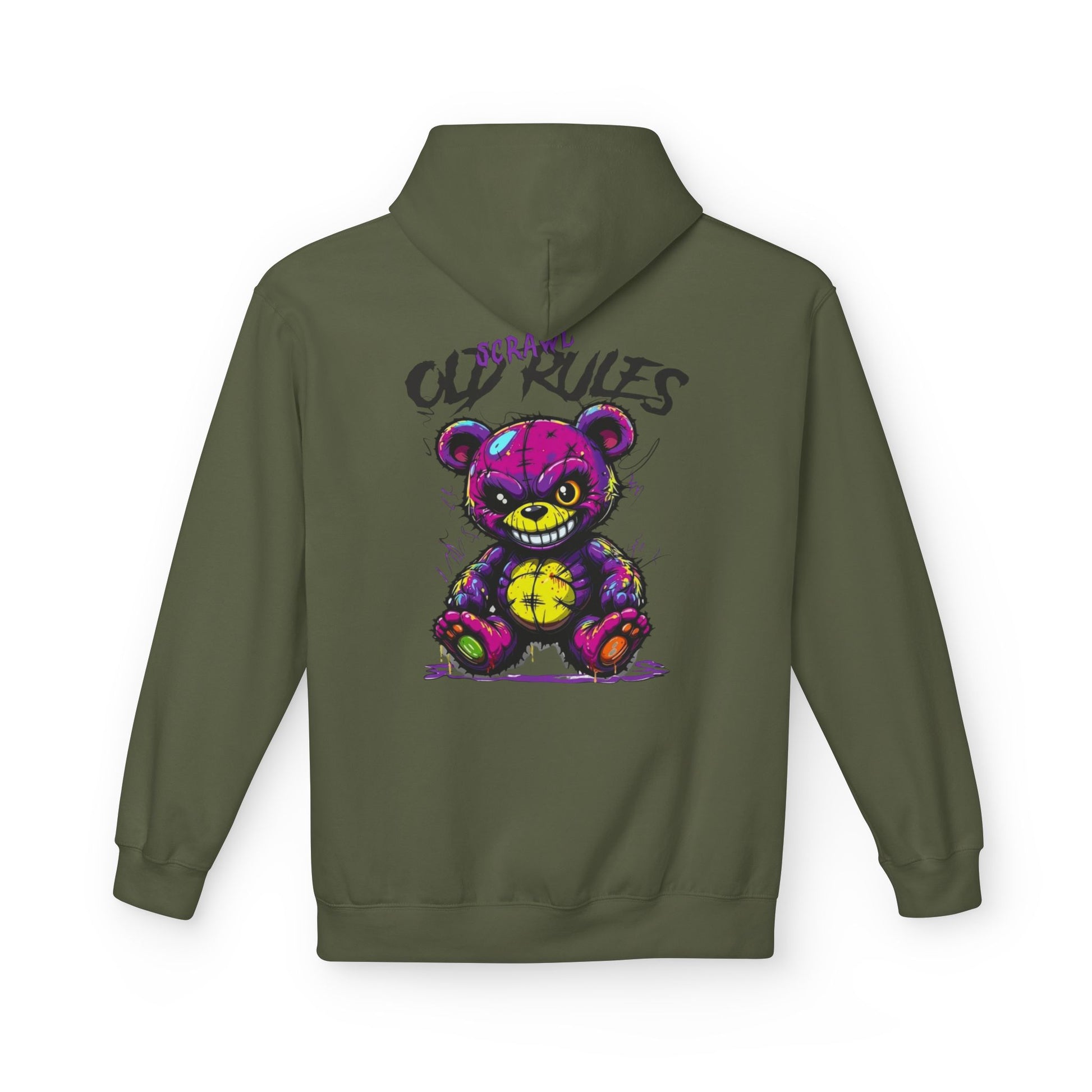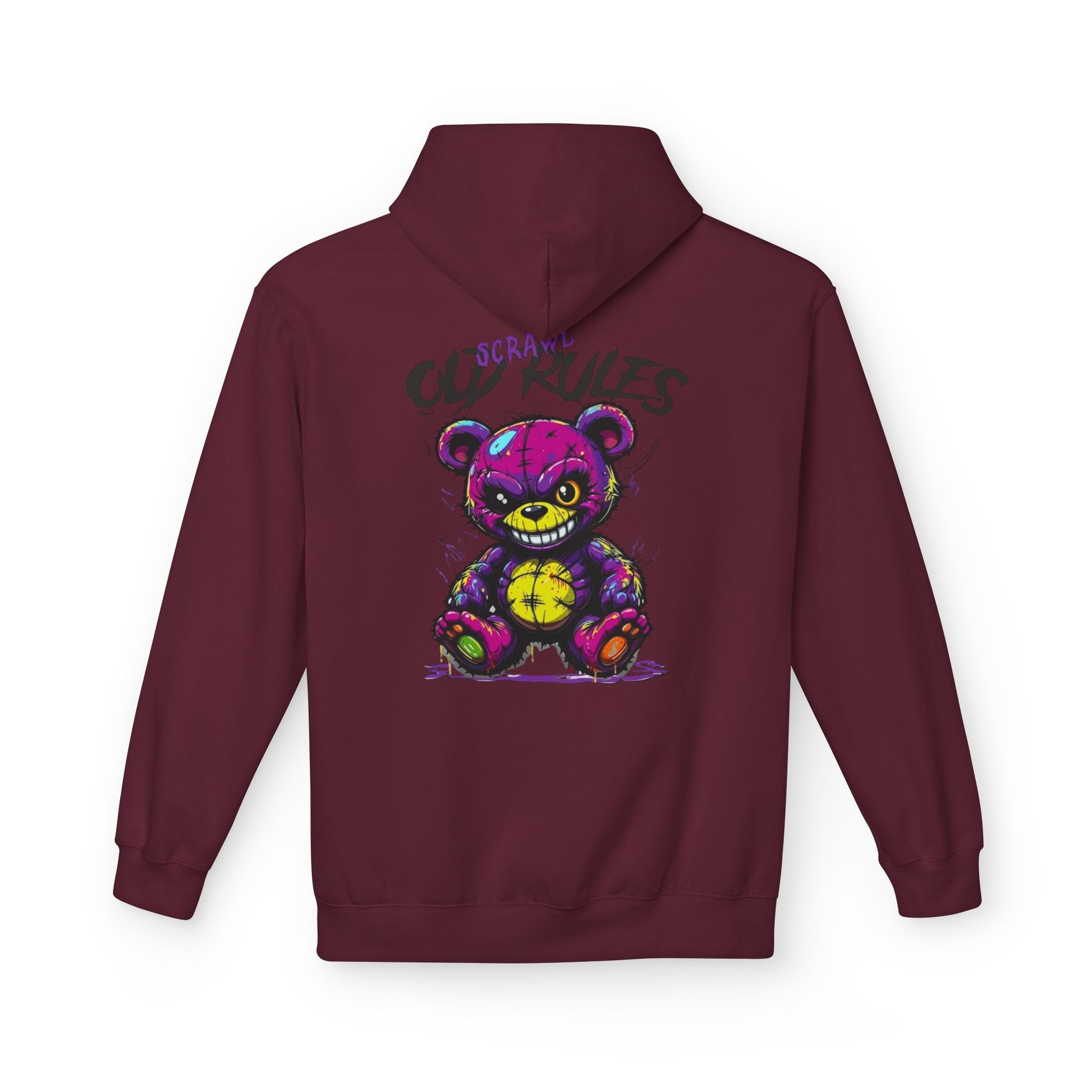 Bad Rules Teddy Hoodie — Edgy Grunge Purple Bear Graphic Hoodie