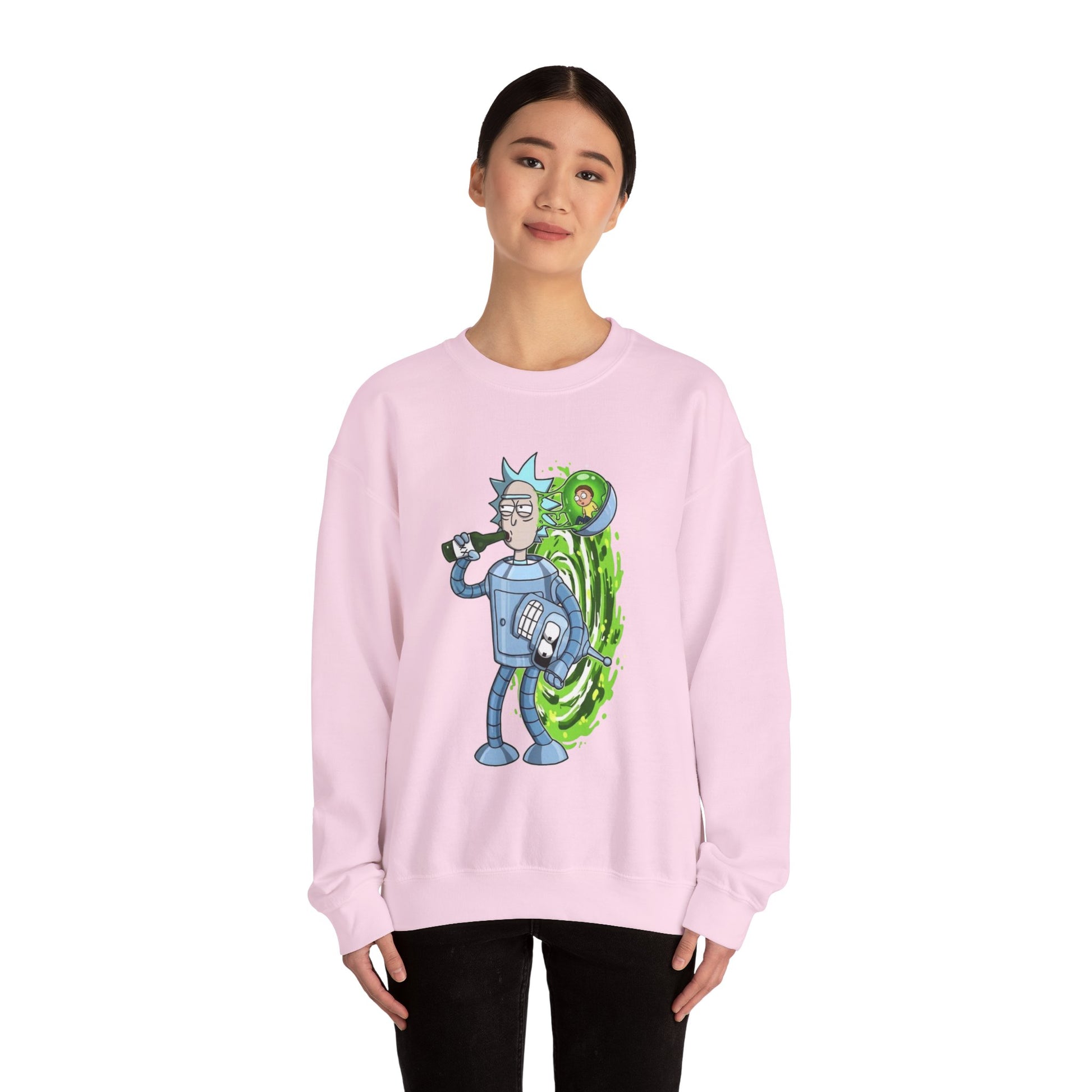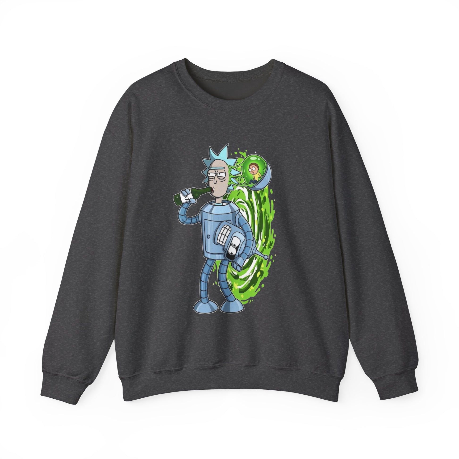 Crewneck Sweatshirt — Sci‑Fi Portal Rick Drinking Design