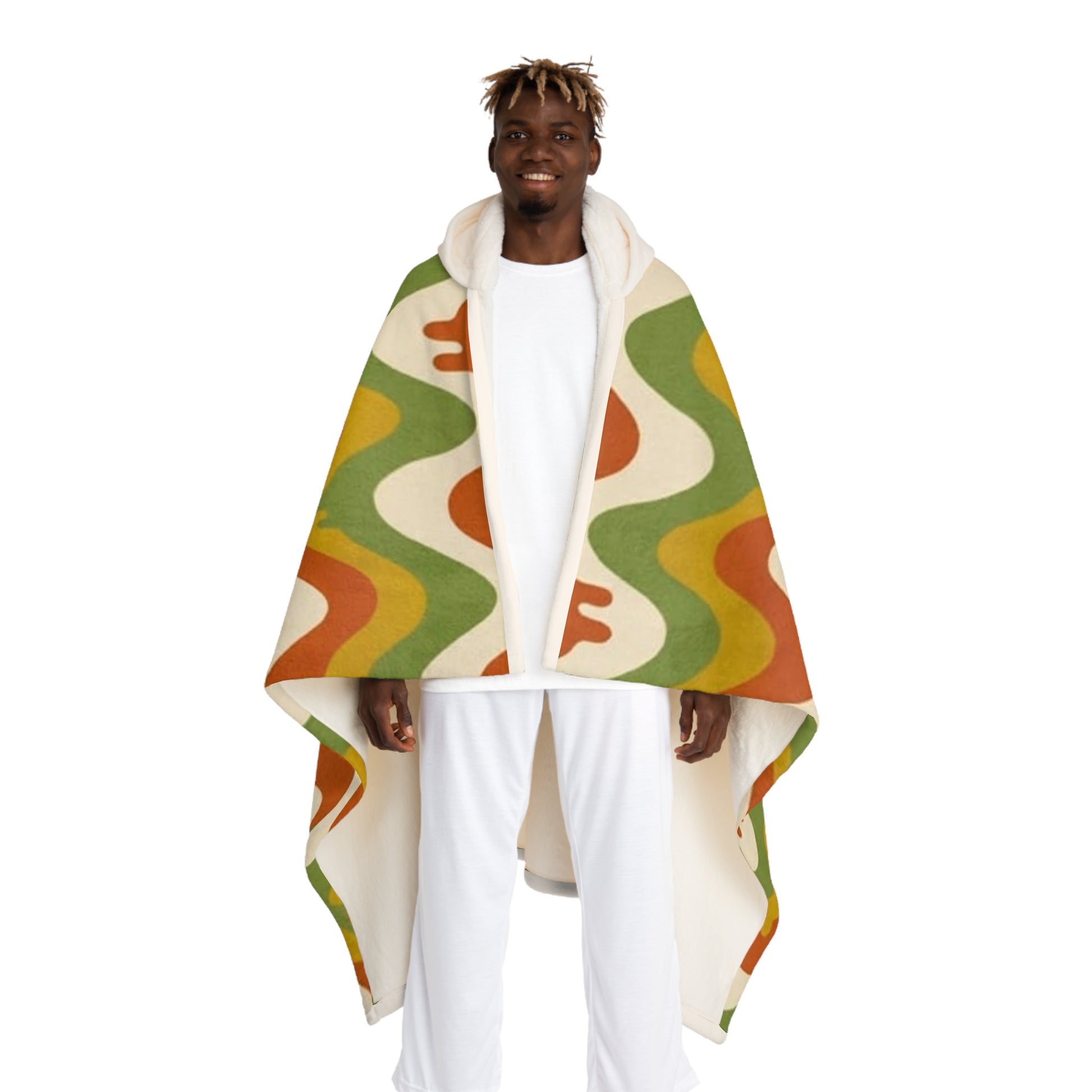 Hooded Sherpa Blanket — Retro Green & Orange Wavy Fleece Throw